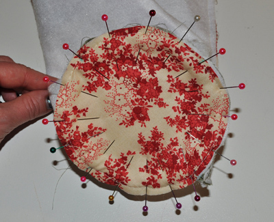 Stitch in place to bottom lining as shown using the ladder stitch or just tiny stitches. (This is on the inside so no one will be looking at it.)