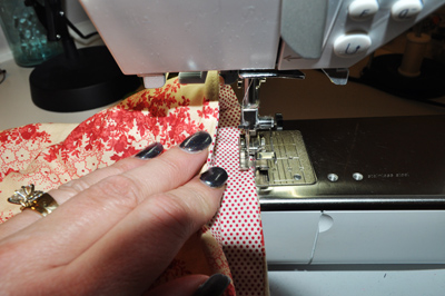 Stitch side seam starting at lower panel edge up to top edge of lining using a 1/4″ seam allowance.