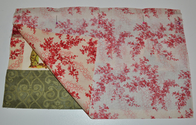 Follow manufacturer’s instructions for iron-on transfers. Of course, you don’t have to use my Vintage Valentine Images. Feel free to create your own or use none at all. You could simply substitute another fabric of your choice in those sections. I say, “Do what you like! There is no wrong design, only variations!”