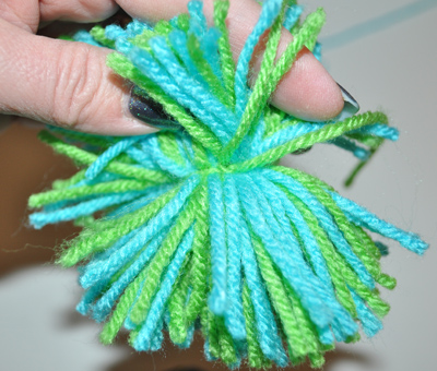 Trim up straggly pieces of yarn to give your pom pom a nice even shape. Here is a finished Pom Pom! Depending on the type of yarn and the amount you wind onto your templates, you can get a variety of pom pom looks.